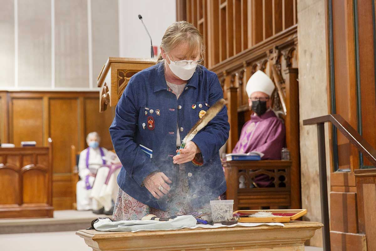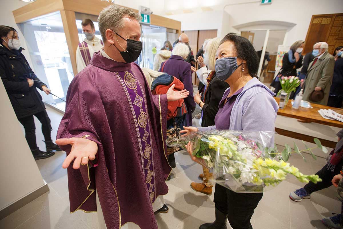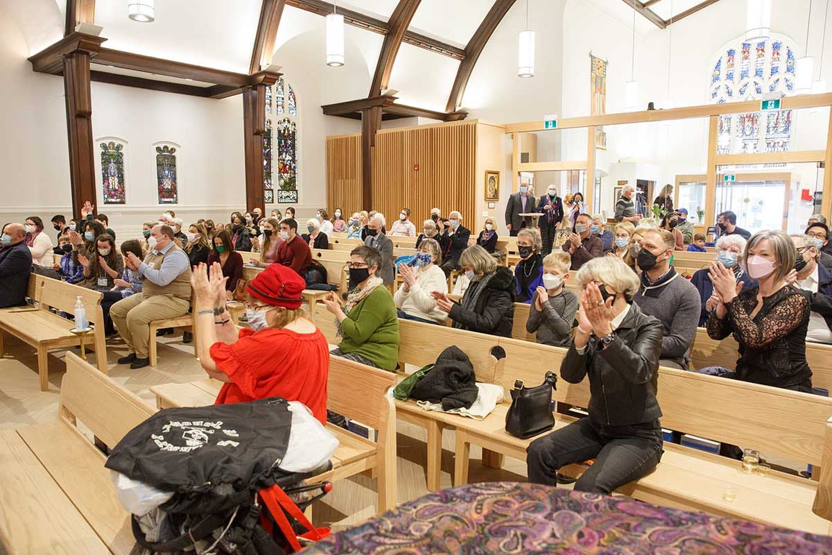 Members of St. Aidan, Toronto celebrate the completion of a major renovation of the interior of the church on March 27.