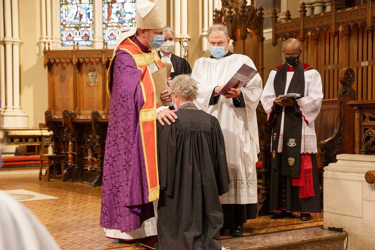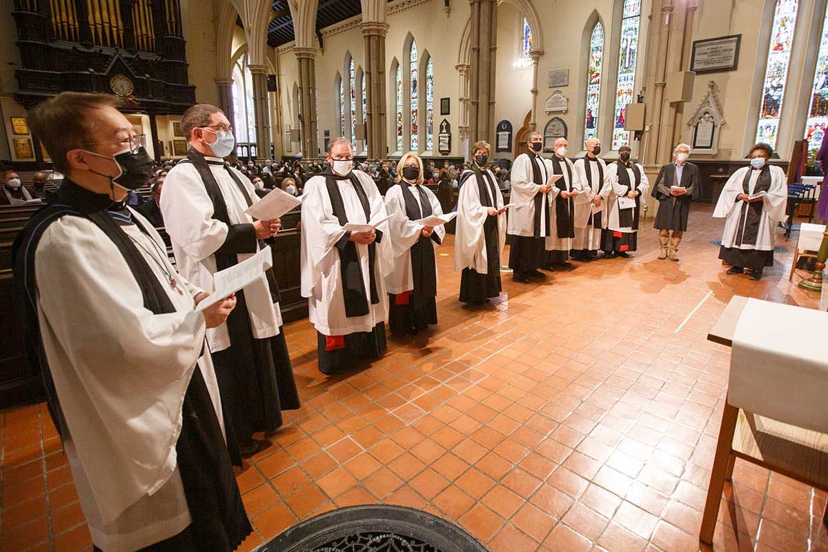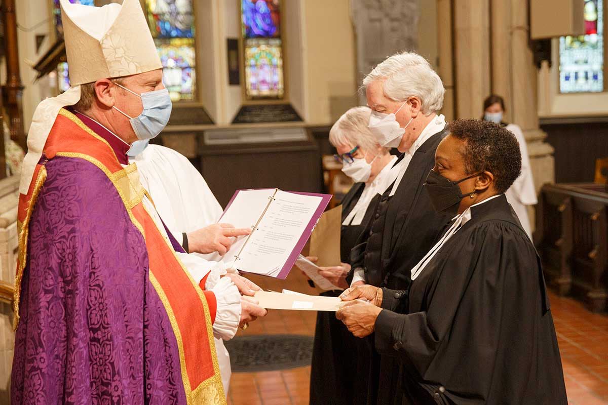 New honorary canons of St. James Cathedral and vice-chancellors of the diocese are installed during a service of Evensong at the cathedral on March 28. The new vice-chancellors are Marg Creal, Mark Hemingway, Gail Smith and John van Gent. The new honorary canons are the Rev. Canon Simon Bell, the Rev. Canon Andrea Budgey, the Rev. Canon Gregory Carpenter, the Rev. Canon Susan Climo, the Rev. Canon Stephanie Douglas-Bowman, the Rev. Canon James Ferry, the Rev. Canon Timothy Haughton, the Rev. Canon Maggie Helwig, the Rev. Canon Stephen Kirkegaard, the Rev. Canon Victor Li, the Rev. Canon Erin Martin, Canon Robert Saffrey, and the Rev. Canon Claudette Taylor. Bishop Andrew Asbil presided and the Rev. Canon Dr. Stephen Fields gave the sermon.