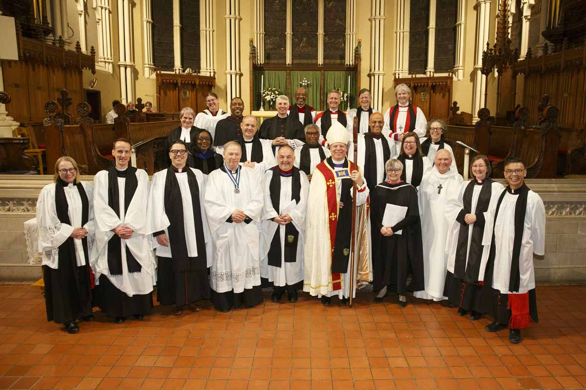 Bishop Andrew Asbil installed 12 new honorary canons of St. James Cathedral before a full congregation of friends, family and supporters on Jan. 21. The new canons were the Rev. Canon Julie Burn, incumbent of Church of the Resurrection, the Rev. Canon Andrea Christensen, incumbent of St. Timothy, Agincourt, the Rev. Canon Dr. Alison Falby, incumbent of All Saints, Sherbourne St., the Rev. Canon Andrew Federle, incumbent of St. Clement, Eglinton, Canon Dr. Anita Gittens, ODT, a member of St. Paul the Apostle, Rexdale, the Rev. Canon David Bryan Hoopes of the Order of the Holy Cross, Canon Janet Marshall, director of Congregational Development, the Rev. Canon Rob Mitchell, incumbent of St. Olave, Swansea, the Rev. Canon Lisa Newland, incumbent of Christ Church, Stouffville, the Rev. Canon Jesse Parker, incumbent of St. John the Evangelist, Port Hope, the Rev. Canon Mark Regis, incumbent of St. Mary and St. Martha, and the Rev. Canon Kevin Wong, incumbent of All Saints, Markham.