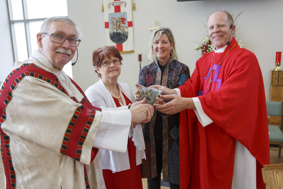 After worship, St. George’s many volunteers were recognized for their faithful service to the parish, each person receiving a card of thanks and a token of appreciation from Bishop Asbil. Everyone then enjoyed a delicious potluck lunch in the parish hall, with contributed hot and cold dishes, followed by dessert, including a special cake celebrating St. George’s 100 years.