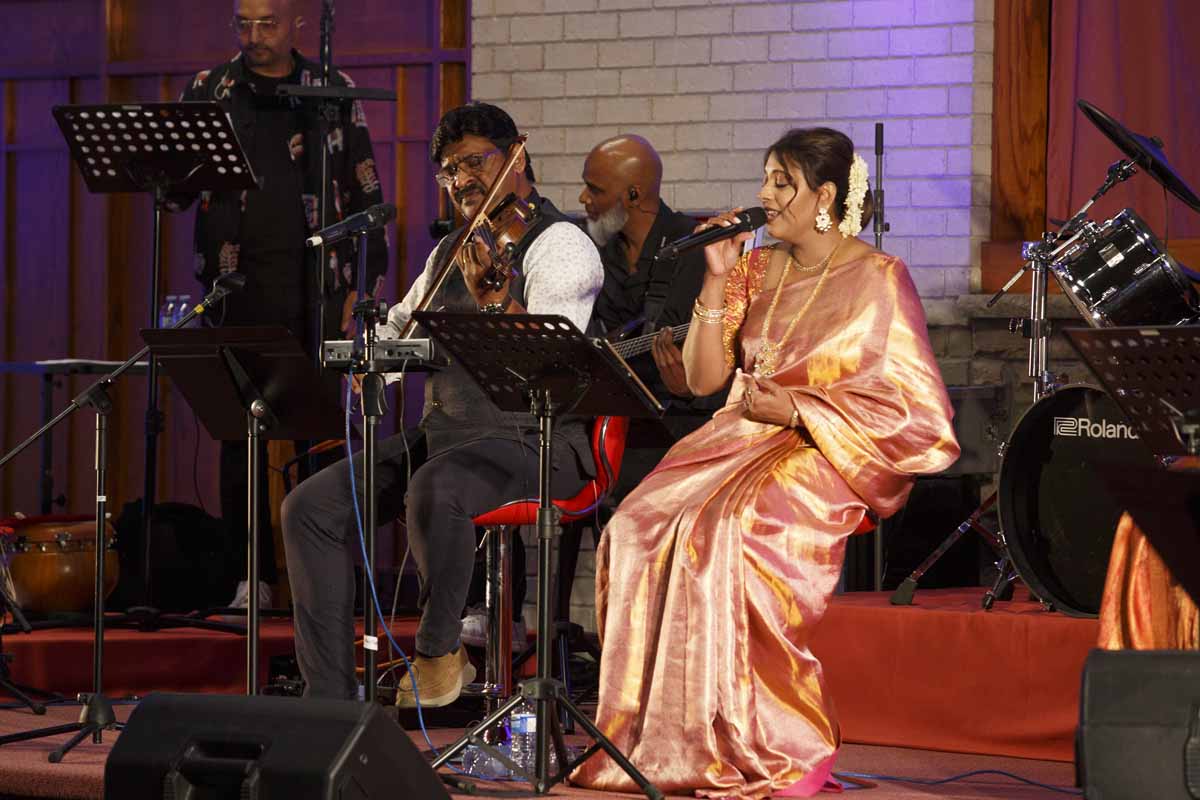 During “Namo,” he showcased his mastery of the violin and the depth of his compositions while engaging the audience in singing popular Tamil songs that have touched countless hearts over decades and generations. He was joined by lead singer Melita Suresh, St. Bede’s vocalists and an ensemble of musicians playing keyboard, guitars, drums, tabla and flute. The performance also featured the Ezhraites and the St. Bede’s choir, creating a harmonious blend of South Indian musical heritage and Western classical influences.