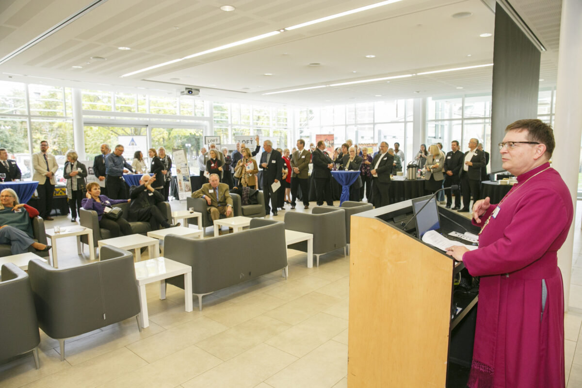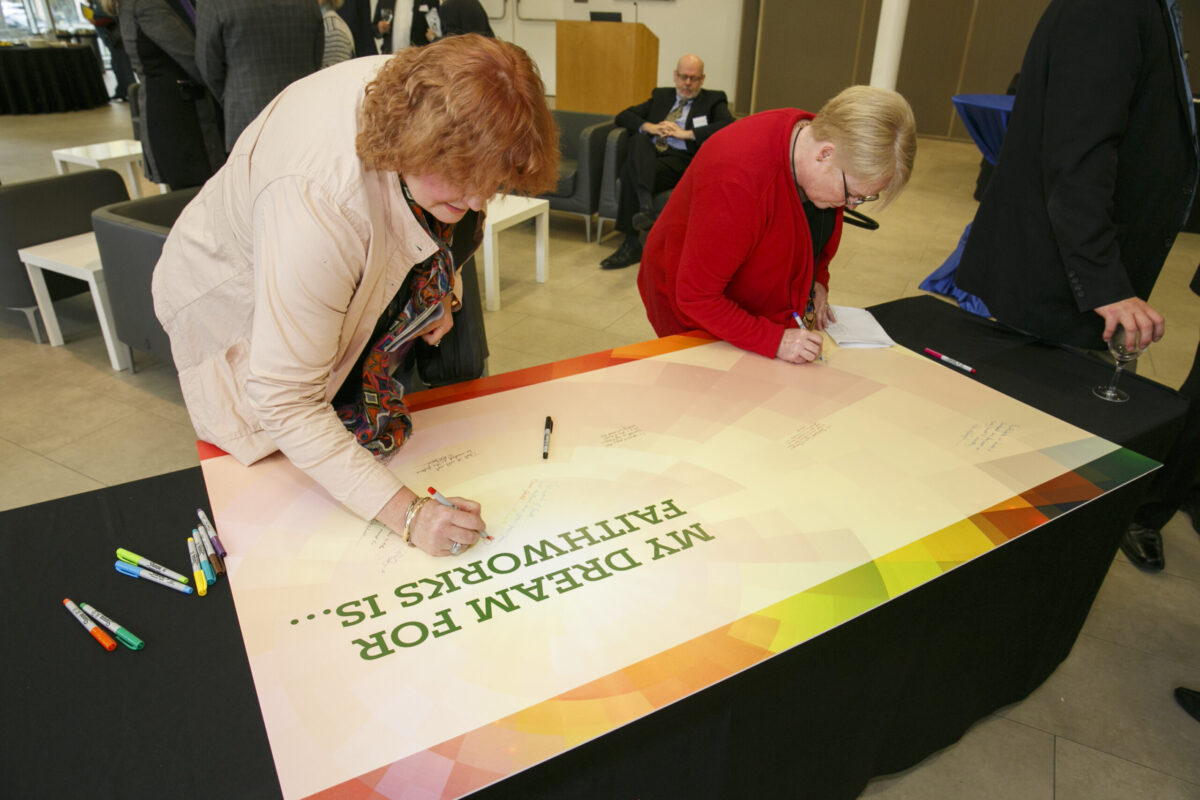 FaithWorks, the diocese’s annual outreach appeal, marked its 20th anniversary with a gala celebration in Snell Hall at St. James Cathedral on Oct. 30. “It was a wonderful gathering celebrating donors, supporters and FaithWorks ministry partners, who together are building communities of hope and compassion,” says Paige Souter, the diocese’s manager of annual giving. Attendees were invited to share their dreams for FaithWorks on a dream board. Archbishop Colin Johnson shared his reflections on 20 years of FaithWorks. As part of his thank-you to donors for their faith-filled generosity, he previewed a special video thanking donors. The celebration ended with a Choral Evensong at St. James Cathedral. Members from the Toronto Urban Native Ministries led the procession with drumming and smudging. Carol Reist from The Dam was the homilist.