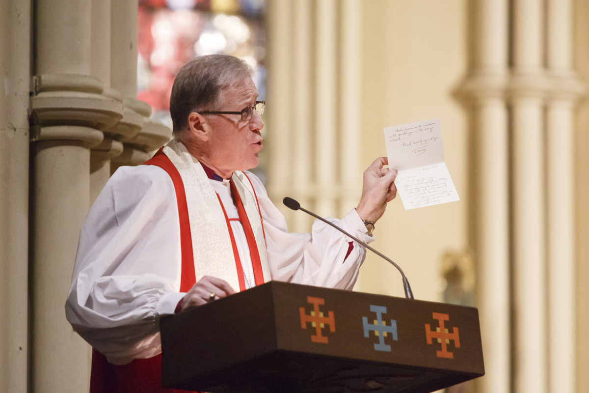 Laughter rippled through the congregation, soon followed by silence as Archbishop Hiltz was overcome with emotion remembering the conversation. “When I hung up the phone after our conversation, I thought to myself, what a lovely final wish – that he be surrounded by family and friends as they listen to the word of God, praising God and singing to God with all our hearts and souls. What a lovely final wish.”