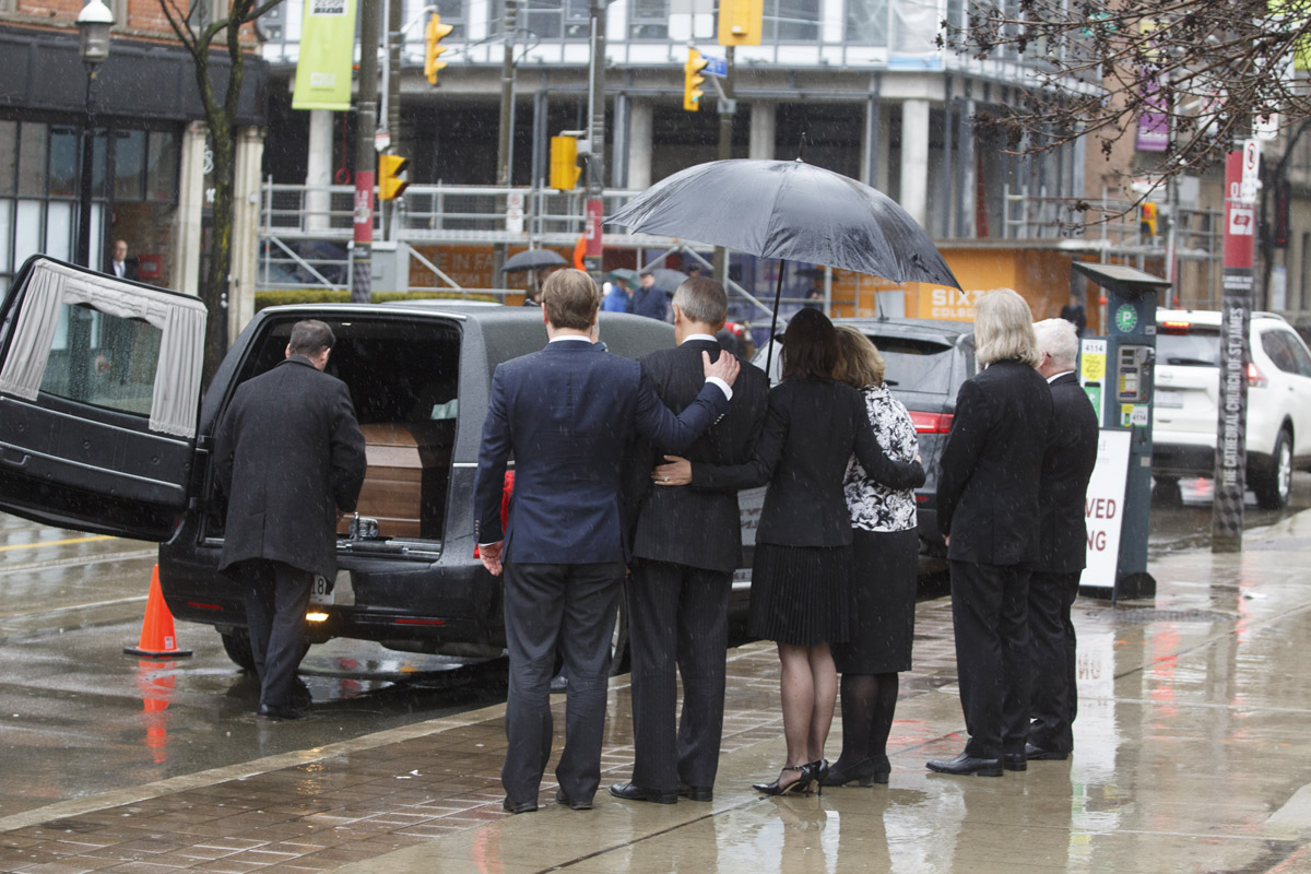Among the honorary pall bearers were Premier Kathleen Wynne, former senator Hugh Segal and Adrienne Clarkson, a former governor-general. Also in attendance was the Hon. Elizabeth Dowdeswell, the Lieutenant-Governor of Ontario.