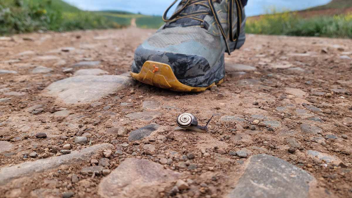 This was a cold, wet spring in Spain. Our fellow pilgrim Francis commented that the weather in his native Ireland was warmer and sunnier than where we were. On one of our days approaching Burgos, we struggled through a biting 8°C wind. Trudging along a boot-sucking mud path that made every step twice as heavy, we experienced driving rain with occasional hail and thunderclaps. But the sun broke through and we were treated to a glorious rainbow that filled the sky, both ends touching down at the horizon. All of the hardship became nothing more than noise.