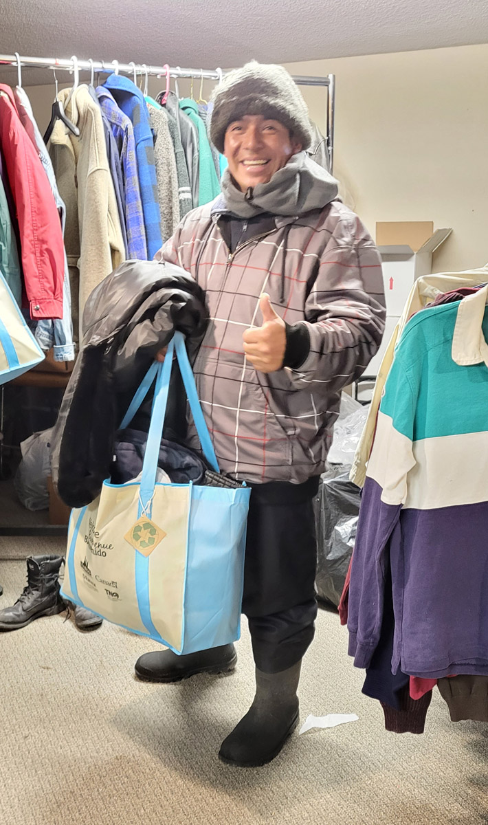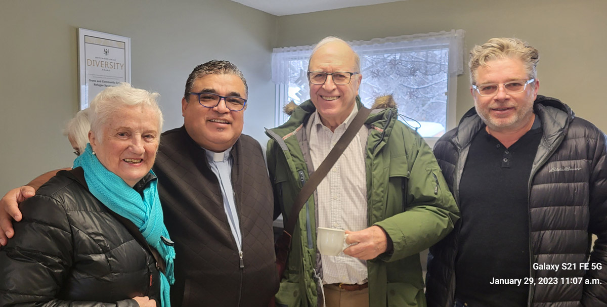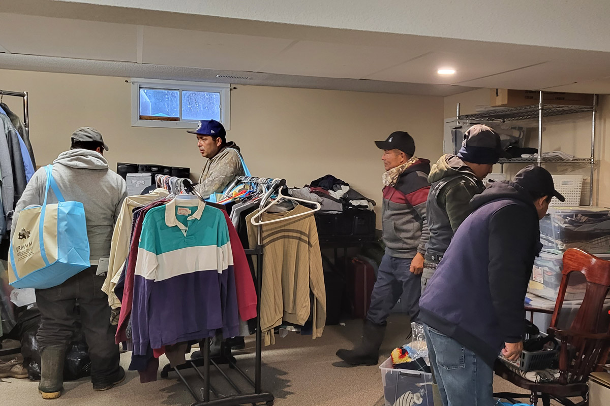 Some of the first migrant workers arriving in Durham Region in March shop for warm clothing, food and hygiene products at the Hub at St. Saviour, Orono. The Hub is part of the diocese’s Migrant Worker Ministry, which serves the needs of thousands of men from Mexico and the Caribbean who work on farms in Durham Region every spring, summer and fall. The Hub, which is staffed volunteers, provides donated items to the men for free. Items include coats, sweaters, shoes, toothpaste, soap, shampoo and non-perishable food such as sugar, instant coffee, soft drinks and snacks. Joining the first arrivals at the Hub are the Rev. Augusto Nunez, the incumbent of St. Saviour’s, with Dan and Audrey Margeran and their son from St. Jude, Wexford in Toronto, who were donating some items. To donate items to the Hub, contact Mr. Nunez at 416-886-4482 or email [email protected].
