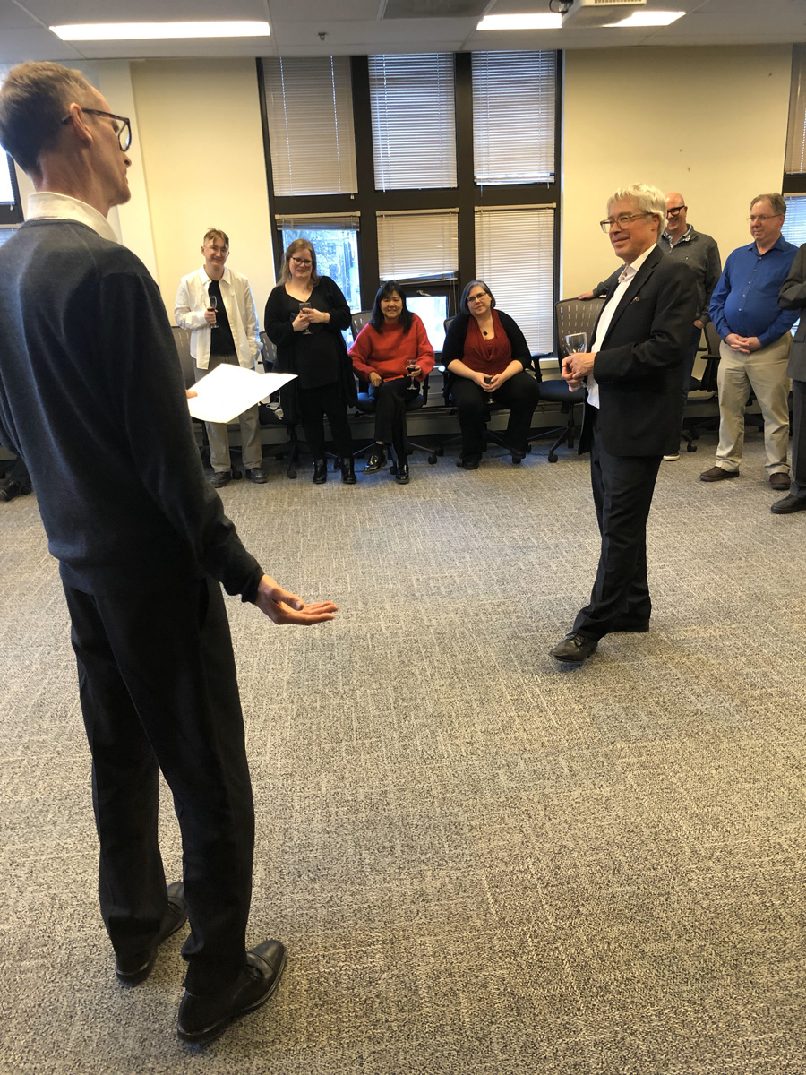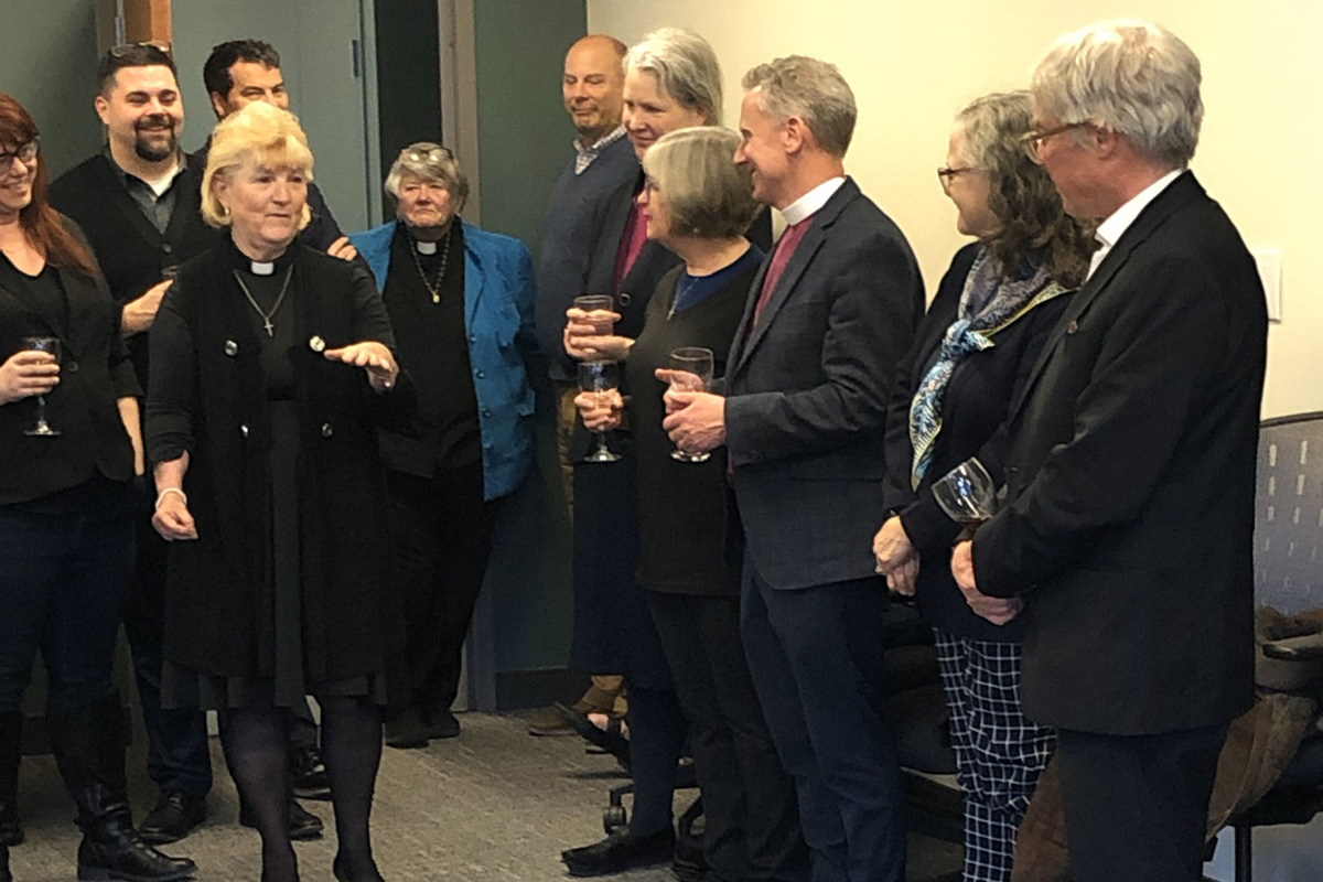 Friends and colleagues attend an open house at the Synod Office in December to bid farewell to Canon Rob Saffrey, who retired as the diocese’s executive director.