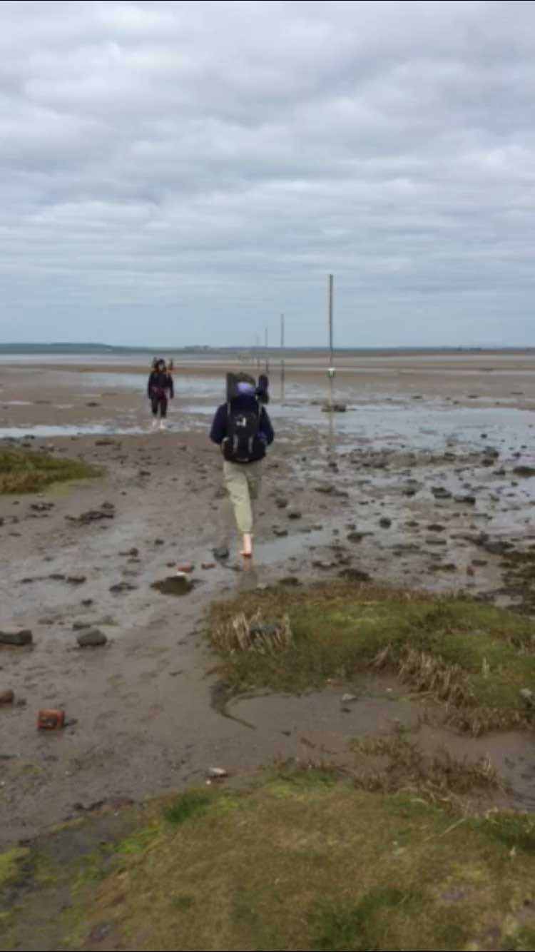 I knew we were approaching the pilgrimage with different agendas when David baulked at the idea of walking barefoot across the sands that separate Lindisfarne from the mainland. Pilgrims to Holy Island, as it is called locally, have been crossing barefoot for many centuries, following tall wooden staves that mark a safe passage at low tide. “It’s a pilgrimage tradition!” I urged him. “It’ll be cold and uncomfortable,” he objected. David is a rationalist to my idealism, and he was rightly worrying about keeping our feet dry and unscathed. He is also doggedly loyal and supportive, so took his shoes and socks off as I did, and plodded dubiously across the cold, wet sands on that first hour of our long walk.