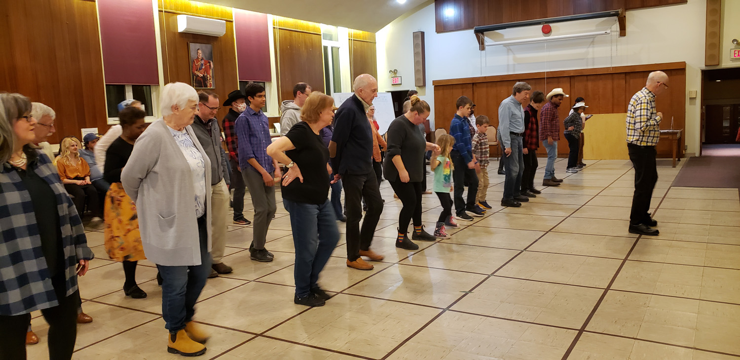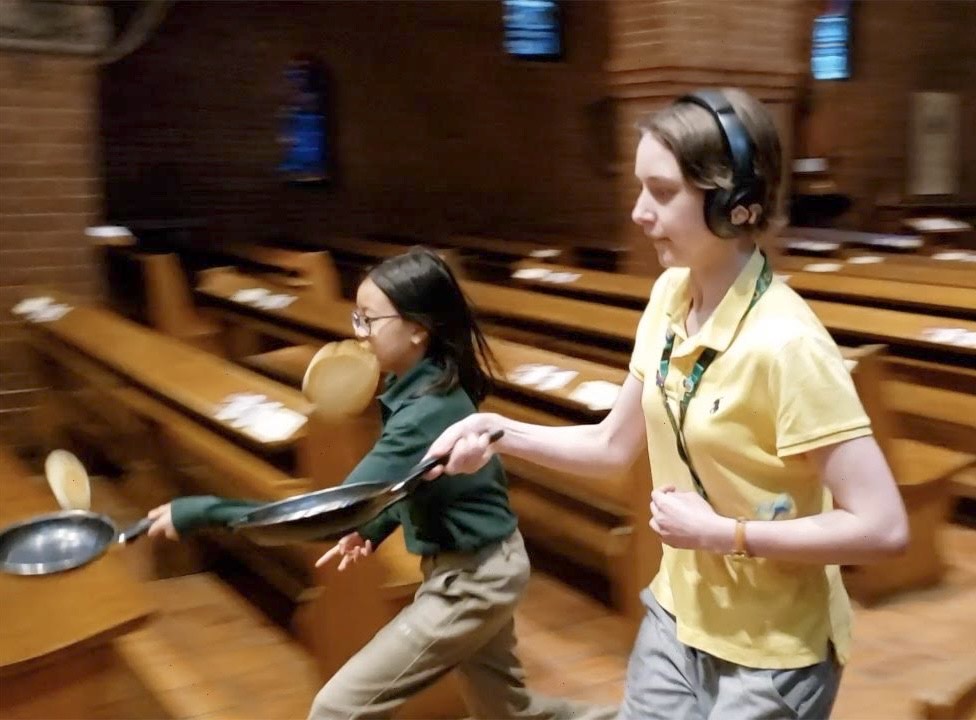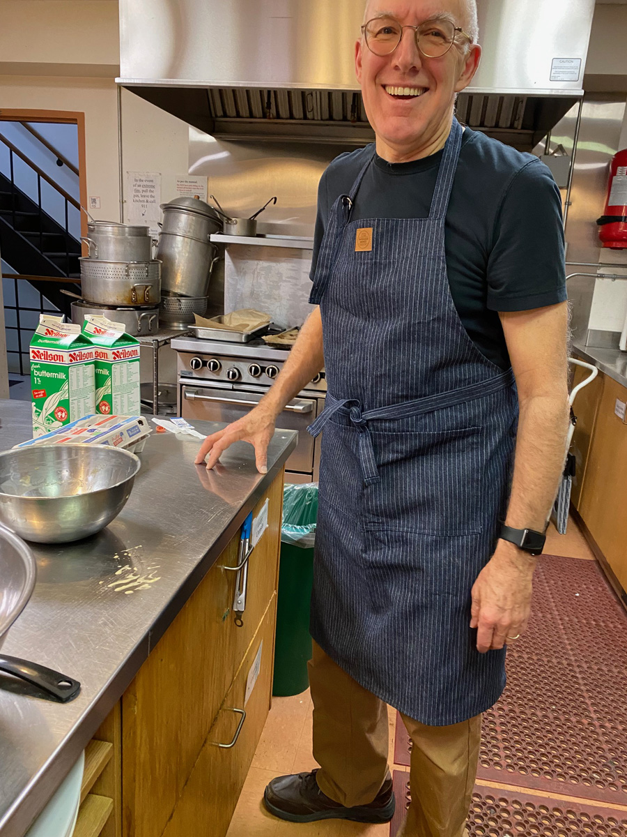 Organist and choirmaster Elizabeth Anderson, seen above, serves up pancakes, sausages and fruit at St. Thomas, Huron Street’s pancake supper on Feb. 10. Afterwards, the floor was cleared for line dancing taught by two guest callers, an event that raised $870 for the Primate’s World Relief and Development Fund. Young choristers also participated in their first pancake-flipping race down the church aisle, a Shrove Tuesday tradition among children’s choirs in churches and cathedrals, especially in the UK.