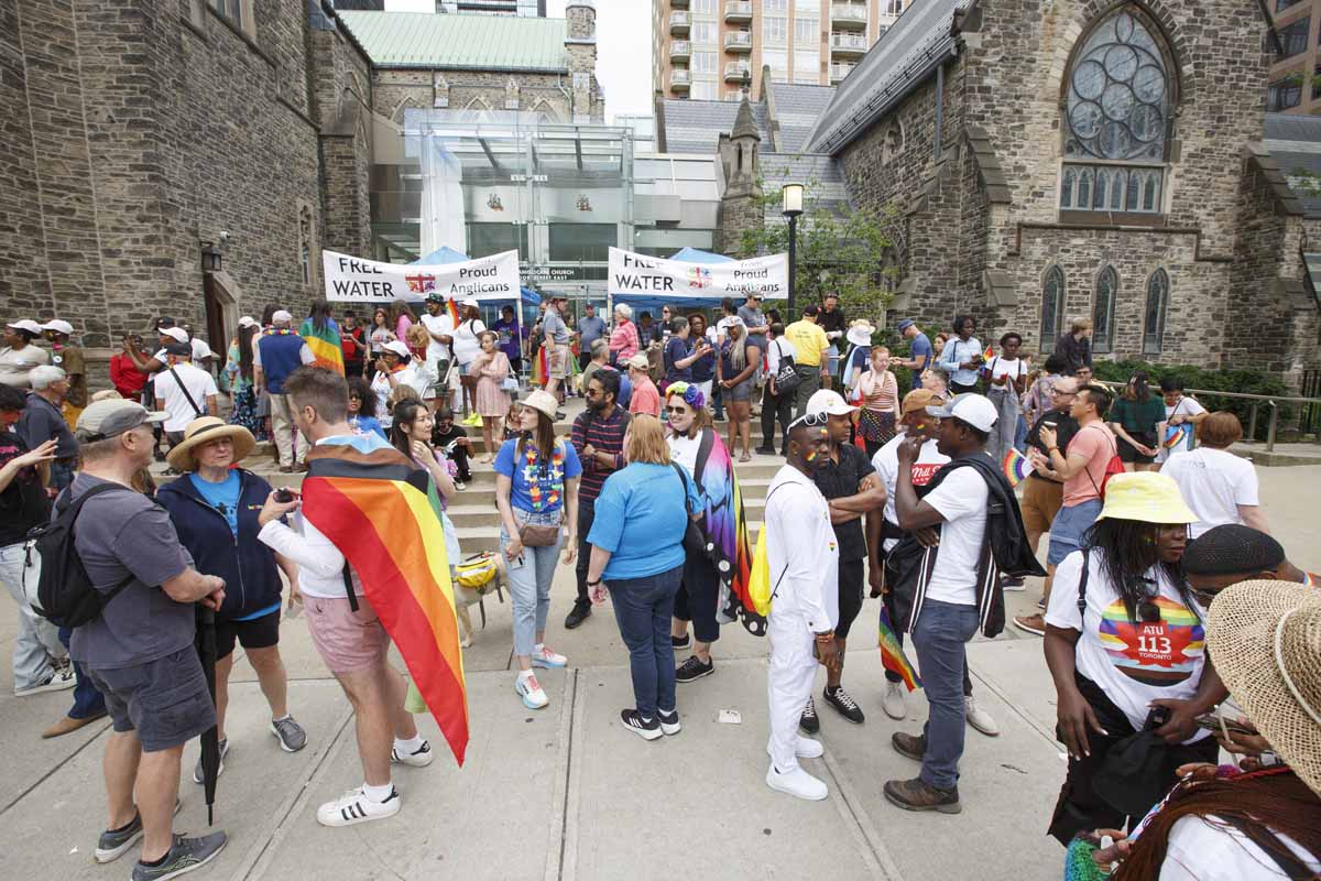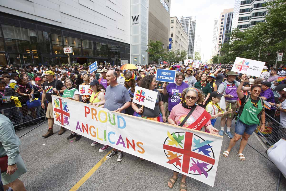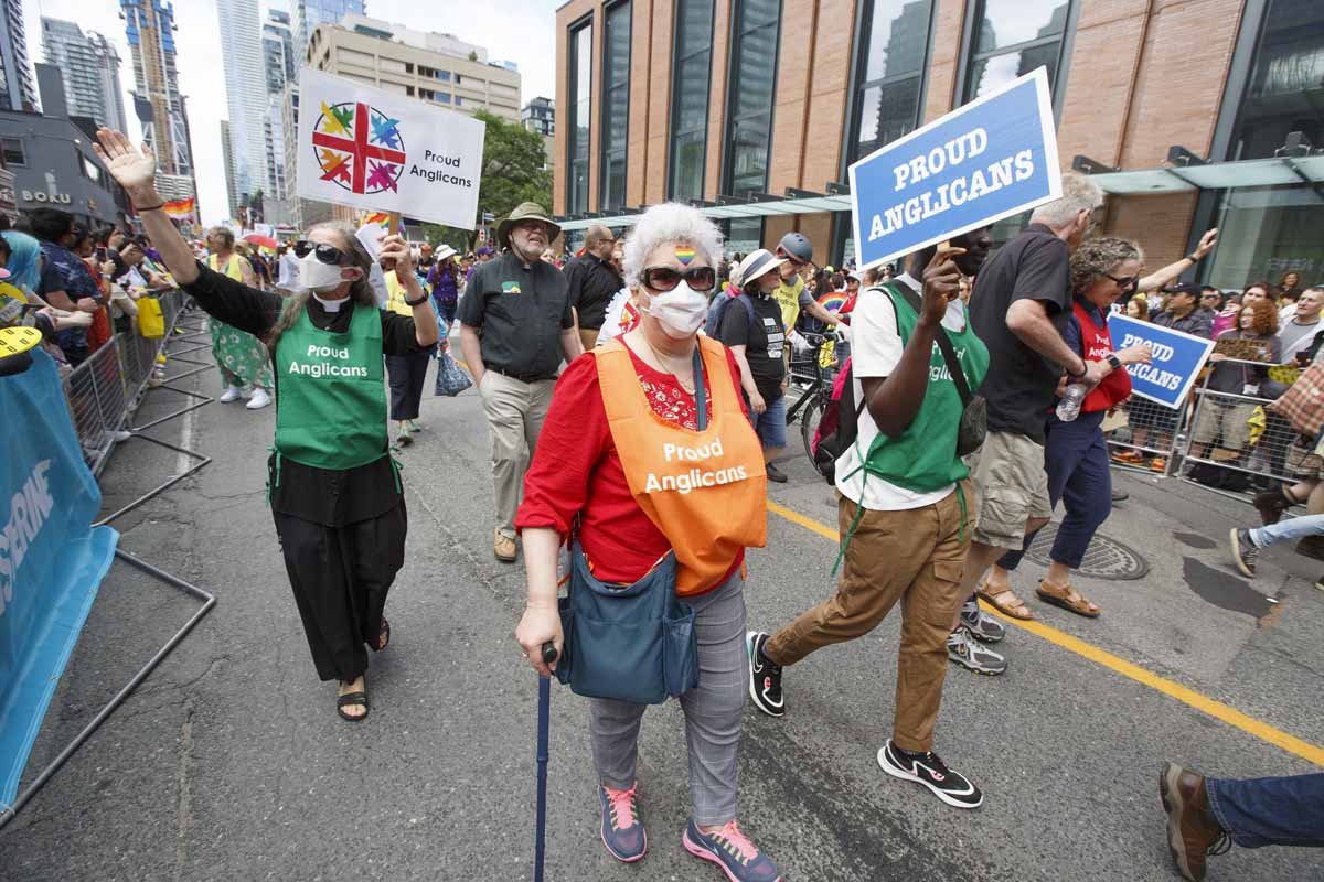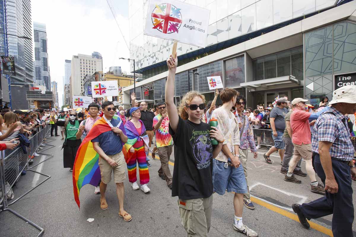 A record 125 Anglicans from 16 parishes walk in the Pride Parade in downtown Toronto on June 30, with tens of thousands of people lining the route. A group from St. Paul, Bloor Street handed out water at the start of the parade.