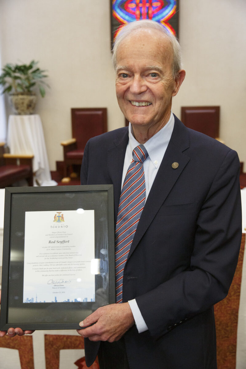 Canon Finlay was one of about 200 people who attended the official re-opening of St. Hilda’s Seniors Community in Toronto on Oct. 25. The ceremony was held at St. Hilda’s church, located on the site at the corner of Dufferin Street and Eglinton Avenue West.